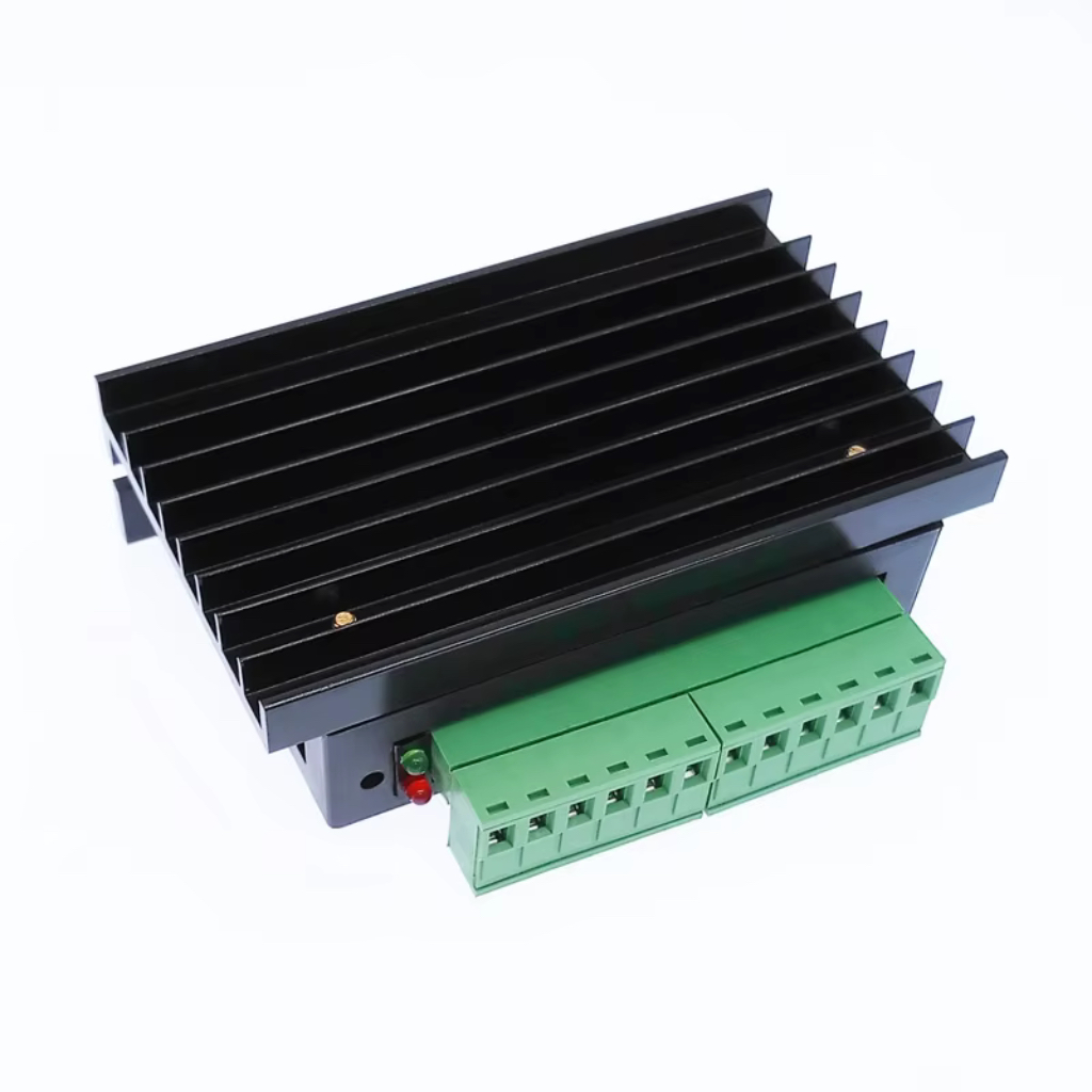 Драйвер шагового мотора TB6600 0.2-4A для CNC станка одноканальный двухфазный в черном корпусе. Оптически изолированный вход, защита от перегрузок, микрошаговый режим, питание: 12-48В.