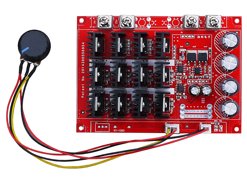 Регулятор оборотов двигателя ШИМ с ручкой управления на проводе. Напряжение: 10-50 В, макс.ток 60А. Максимальная мощность 3000 Вт. Частота ШИМ: 15кГц. Диапазон регулировок: 5-100%. Потребляемый ток в спящем режиме: 40мА. Размеры: 120х85*26 мм