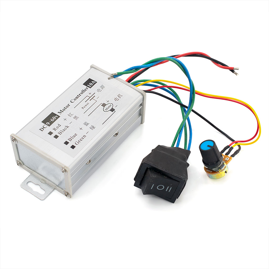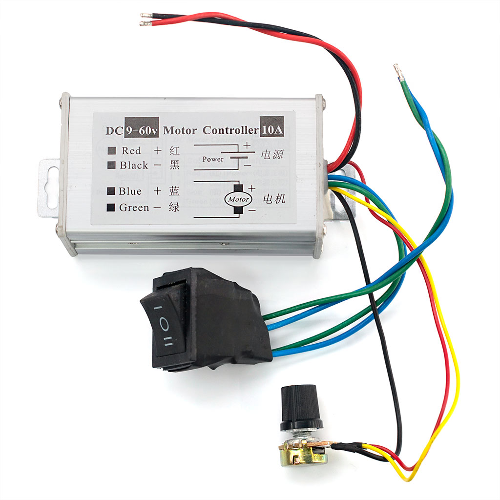 Регулятор оборотов двигателя ШИМ. Напряжение 9-60В, максимальный ток 10А, продолжительный ток 8А. Предохранитель на 10А встроен. Переключатель направления вращения сверху вниз: по часовой-стоп-против часовой. Диапазон регулировок: 0-100%, Размеры: 92*52*36 мм. Вес: 200 г.