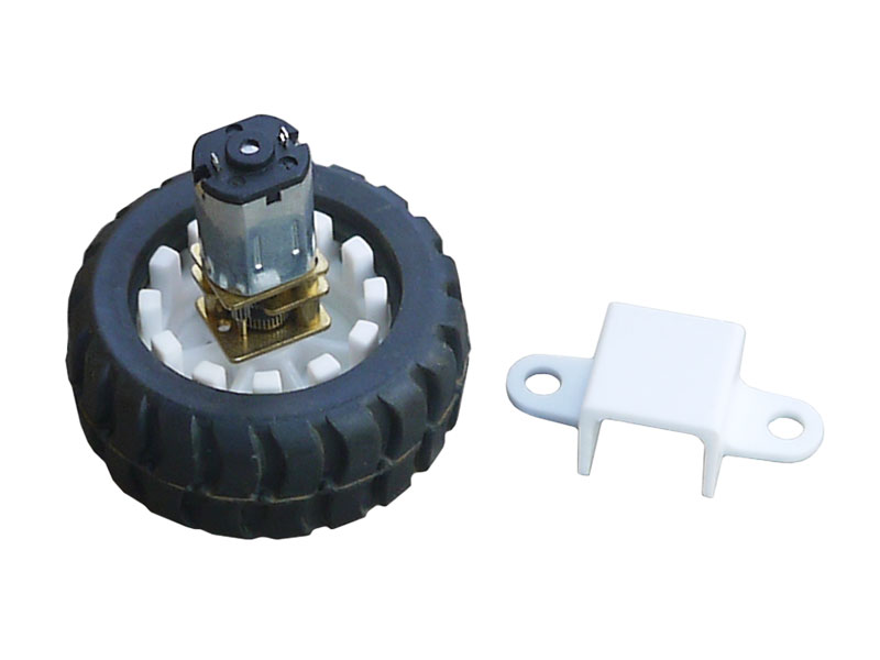 Мотор N20 с колесом 43 мм с резиновой покрышкой для гоночной машинки. Питание: 3-6 В.
