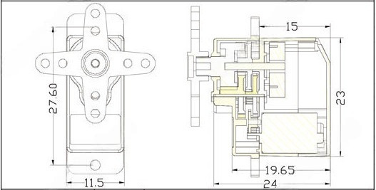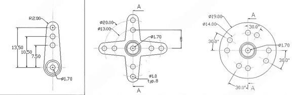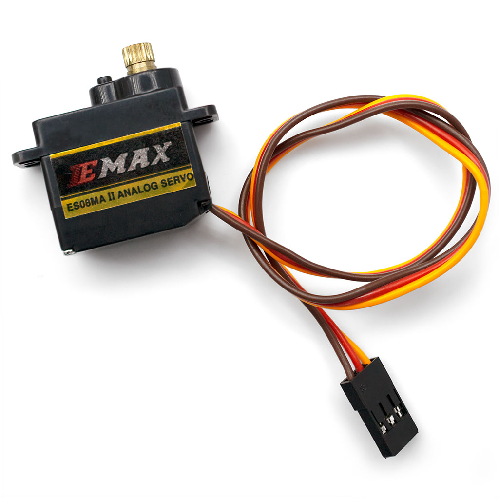 Сервопривод мини EMAX ES08MAII металлические шестеренки. Момент на валу: 2 кг, вес: 12 гр, датчик положения: аналоговый, питание: 4-6В, размер: 23*12*24 мм.