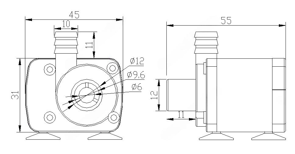 Помпа водяная DC Pump JT-280B 12V; Входное напряжение: 4.5-12В, рабочий ток: 150-420мA, Максимальный подъем: 50-210 см, расход при 12В: 280-320 л/ч, мощность: 4.5Вт, IP68