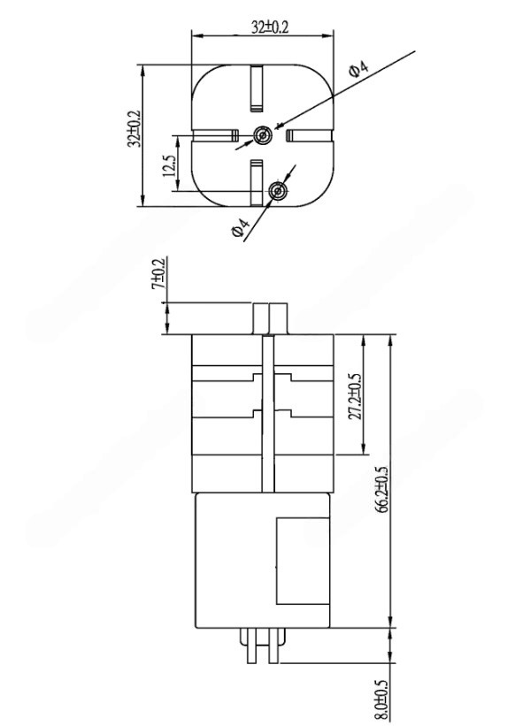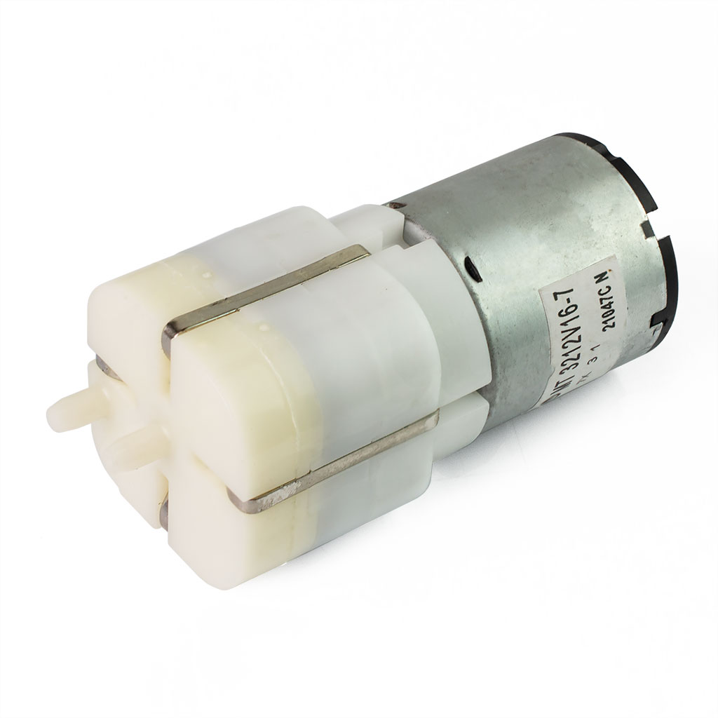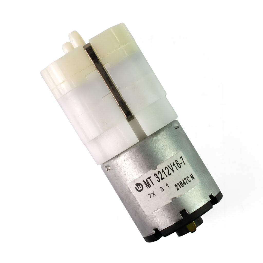 Мотор с диафрагменной воздушной помпой KPM32E-12j. Питание 12В, ток 300-330мА. Воздушный поток без нагрузки: 4-4,5 литра/минуту. Макс.давление 93,3 кПа. Шум менее 65 дБл. Размеры: 32х32х50,2мм.
