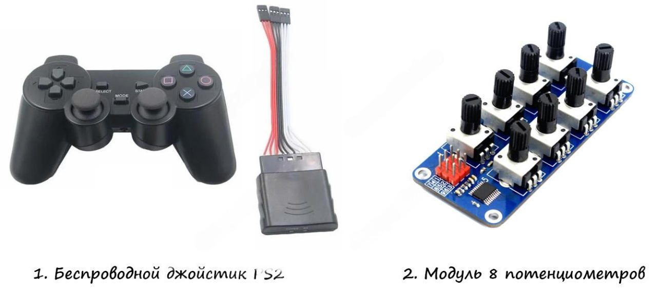 Обратите внимание! Беспроводной джойстик PS2 (2.4ГГц) и Модуль 8 потенциометров RTRobot не входя в комплектацию и приобретаются пользователем отдельно.