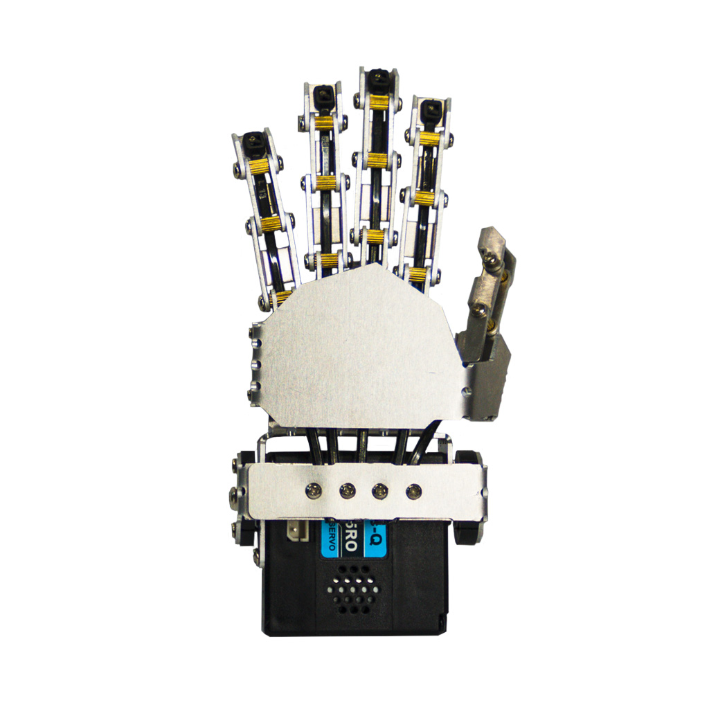 Модель электромеханической руки с бионическими пальцами позволяет роботу воспроизводить основное хватательное движение, выполняемое человеческой ладонью, очень похожее на настоящее. Конструкция руки выполнена из 1-миллиметрового алюминиевого сплава и рассчитана на взаимодействие с исключительно малогабаритными и легковесными объектами. Роботизированная рука обладает свойством "мягкого" захвата предметов. Механизм работы сухожилия пальцев основан на гибкой сцепке из трёх составных фалангов, приводимой в движение одним общим мощным сервоприводом. Все 5 пальцев кисти могут сгибаться или разгибаться только одновременно, под любым доступным углом.