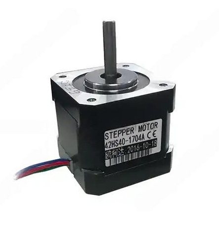 Мотор шаговый Nema 17 (42HS40-1704A) двухфазный, биполярный, 4х проводной. Ток фазы: 1.7А. Момент удержания: 4.0 кг/см. Шаг 1.8°. Размеры: 42х42х40мм. Вес: 280гр