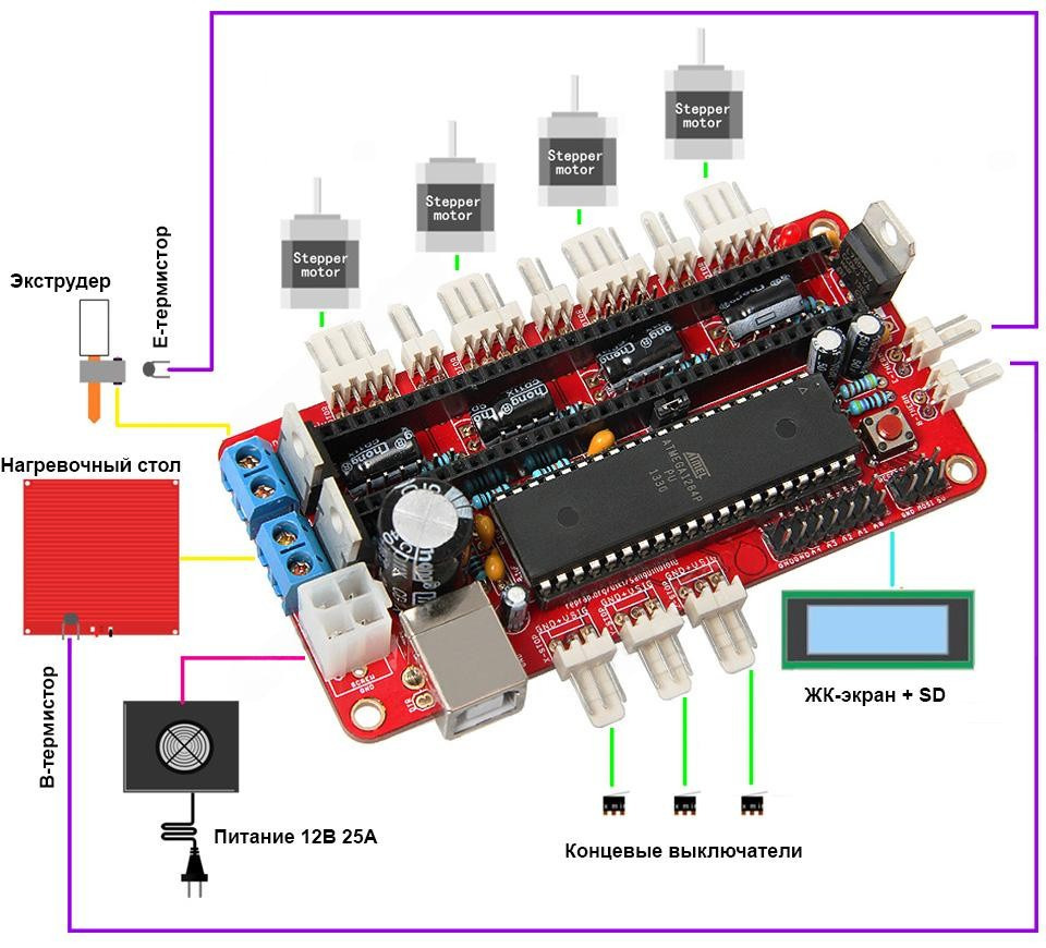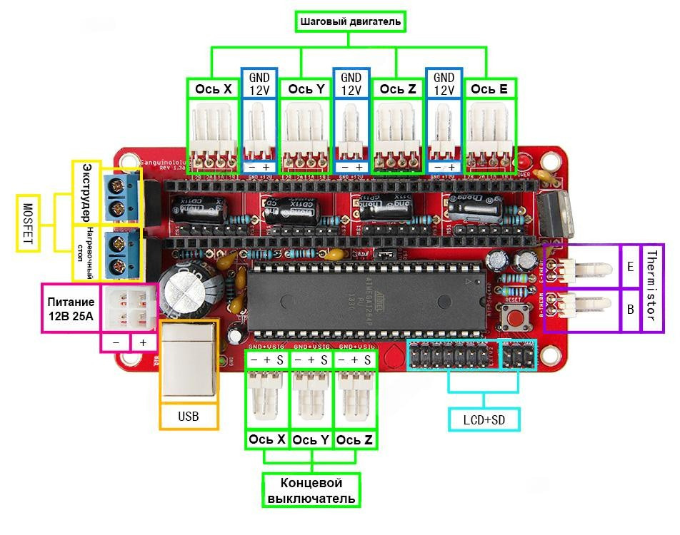Типовая схема подключения платы контроллера Sanguinololu