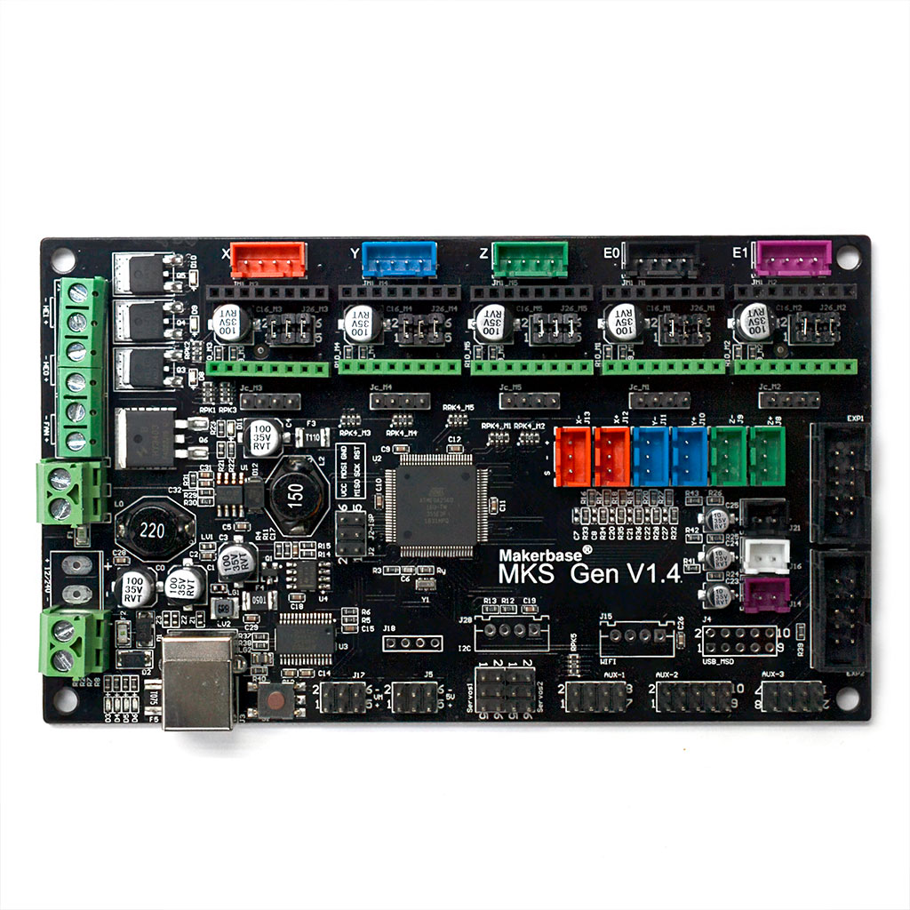 Плата управления 3D принтера MKS GEN V1.4 представляет собой сочетание Arduino Mega 2560 и платы расширения Ramps 1.4, реализованное в виде единого устройства. Предназначена для управления FDM/FFF принтерами с одним или двумя экструдерами.
