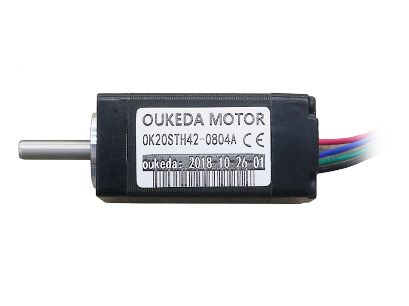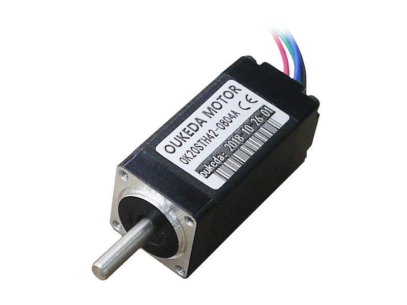 Мотор шаговый Nema 8, биполярный, 4х проводной. Модель OK20STH42-0804A. Ток фазы: 0.8А. Момент удержания: 0.5 кг/см. Шаг: 1.8°. Диаметр вала: 4мм, вылет вала: 8,2мм. Размеры: 20*20*42мм
