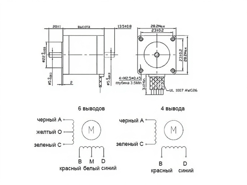 Мотор шаговый Nema 11 (OK28STH28-0354A) двухфазный, биполярный, 4х проводной