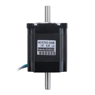 Мотор шаговый Nema 23 (OK57STH51-4204B) двухфазный, биполярный, 4х проводной. Ток фазы: 4.2А. Момент удержания: ? кг/см. Шаг: 1.8°. Размеры: 56*56*51мм