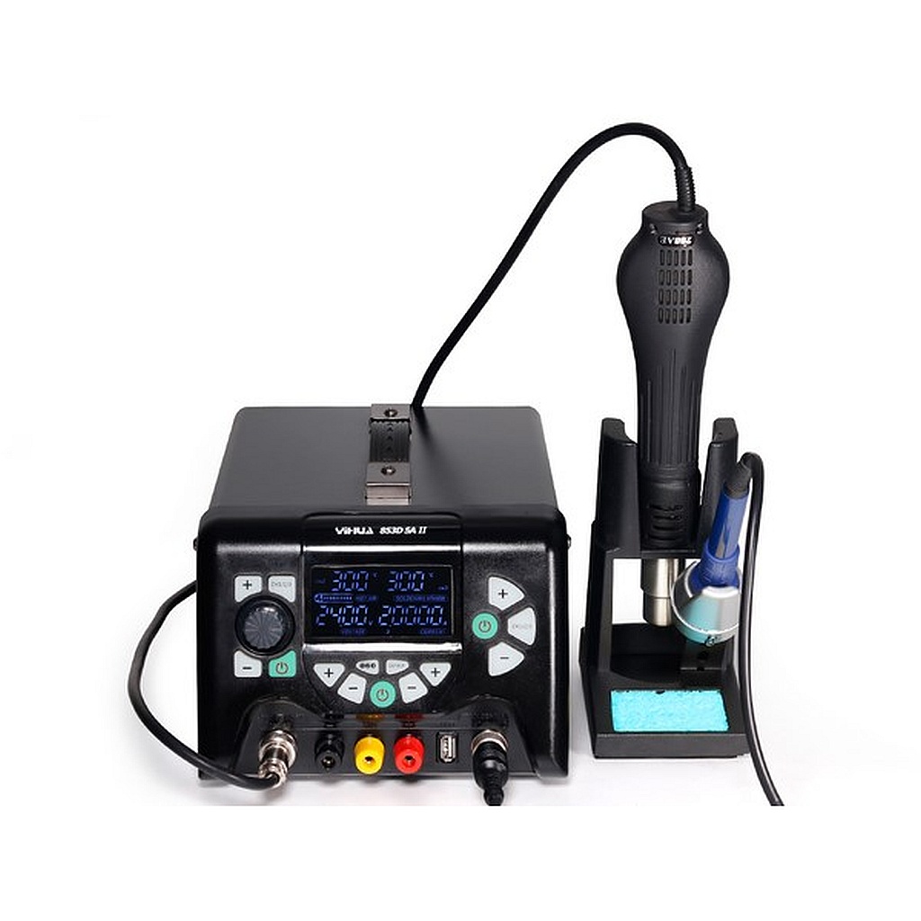 YIHUA 853D 5A USB паяльная станция 75Вт (питание 220В-240В; мощность паяльника 50Вт; температурный режим: 200° - 480°С; USB интерфейс для подключения долнительного оборудования)