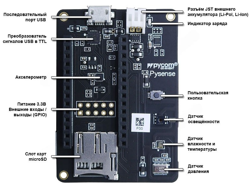 PYCOM Pysense плата расширения с датчиками и сенсорами