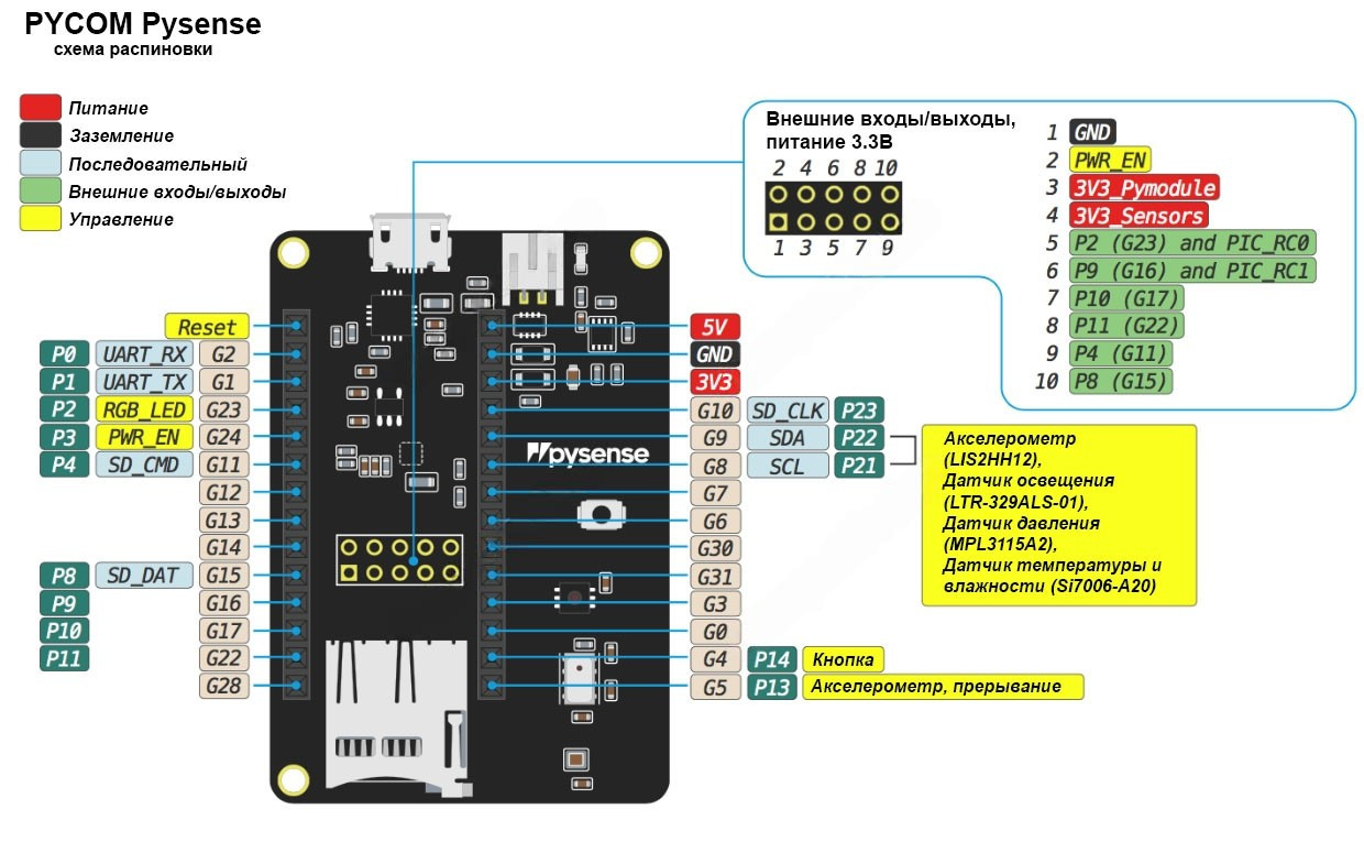 Функциональное назначение выводов Pysense (распиновка)