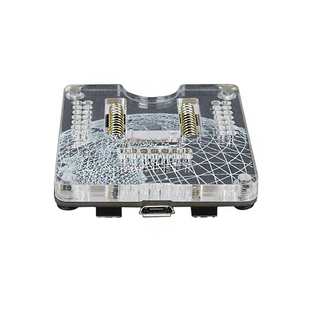 Комфорт от использования платы разработчика ESP-Downloader проявляется во многом. Прежде всего — компактный, почти "карманный" размер. Её всегда можно взять с собой, где бы она не потребовалась. Во вторых — возможность быстро приступить к работе, обусловленная простотой в сборке и полным отсутствием необходимости в припайке к модулю элементов рабочей схемы проекта, все соединения с внешней периферией осуществляются обычными проводами. Подпружиненные контакты разъёма процессора позволяют с лёгкостью устанавливать или извлекать ESP-WROOM-32. Если существует необходимость, пользователь может беспрепятственно экспериментировать одновременно с несколькими контроллерами, поочерёдно меняя их положение при обесточенной встроенным выключателем цепи питания платы. Абсолютно каждый доступный контакт микроконтроллера ESP-WROOM-32, относящийся как к питанию или управлению, так и к группе общего назначения GPIO, продублирован самостоятельными выводами на лицевой поверхности ESP-Downloader, расположенными по сторонам платы тремя раздельными рядами 7х2 с шагом 2.54мм, в полном соответствии с их размещением в самом процессоре. Прозрачная 5-миллиметровая пластина в нижней части конструкции модуля ESP-Downloader надёжно защищает плату и её контакты от прямого соприкосновения с любой ровной поверхностью.