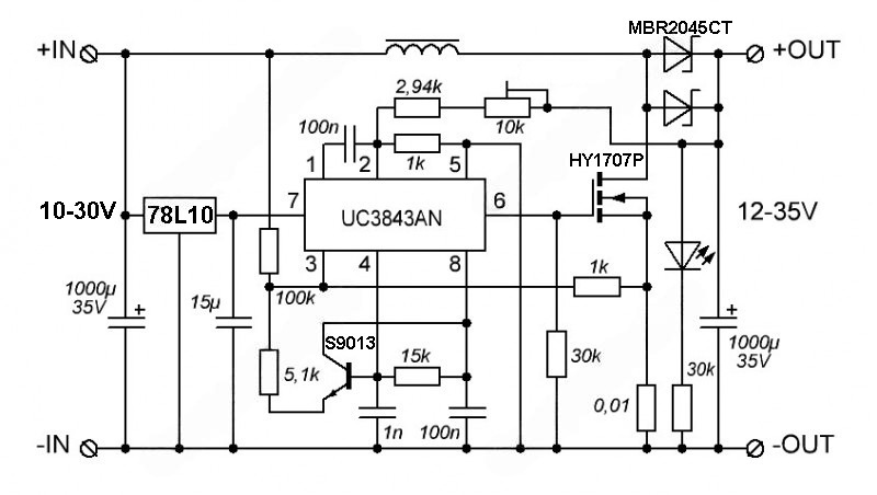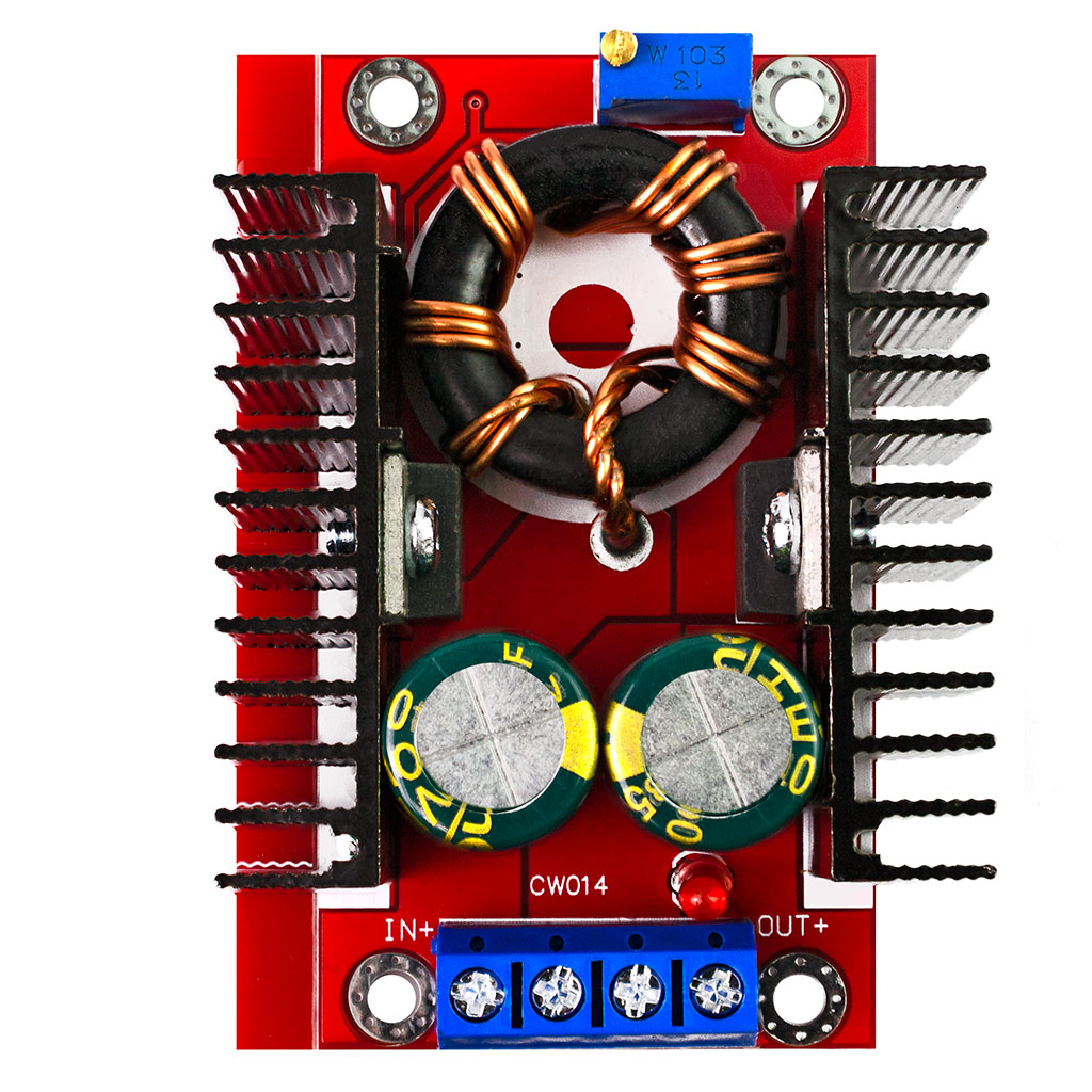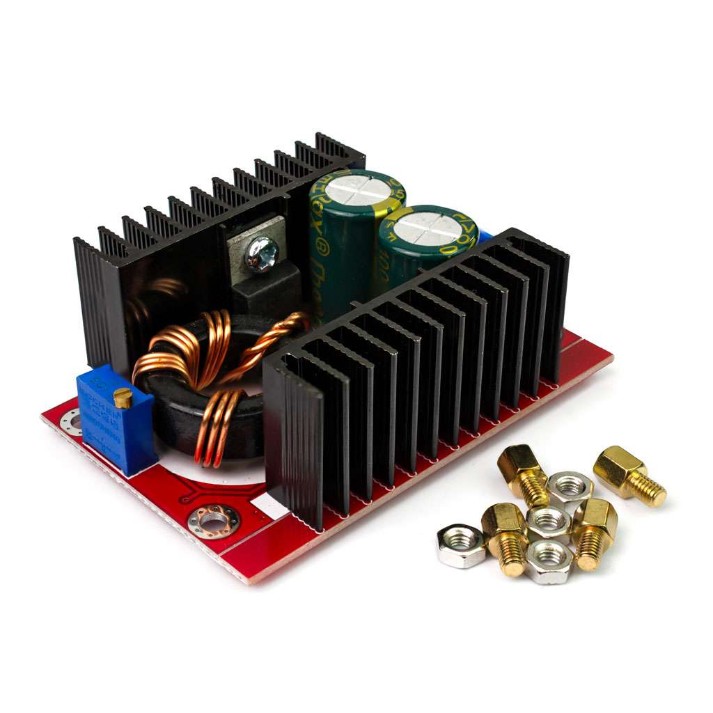Преобразователь постоянного напряжения DC-DC 150Вт Boost повышающий. Модель QSKJ QS-1224CBD-150W. Вх. напр. - 10-30В. Напр.вых - 12-35В. Ток выхода,макс.: 6А. Выбор напряжения - регулятором. ШИМ-контроллер: UC3843A. Силовой ключ: HY1707P. Частота преобраз