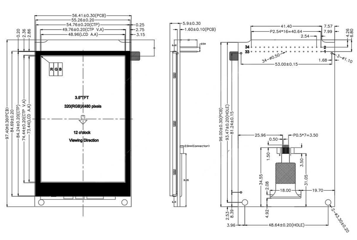 Цветной IPS TFT LCD экран 4.3" с разрешением 800*480 точек |
