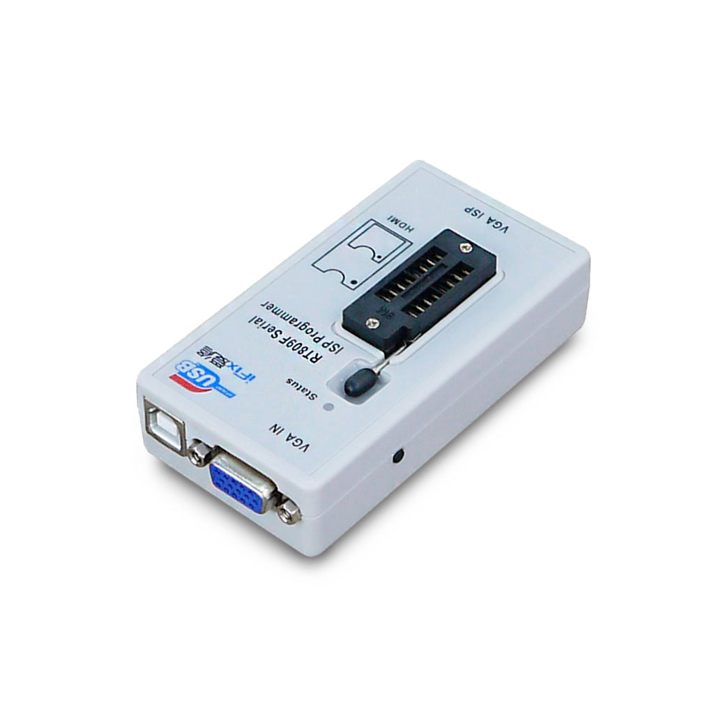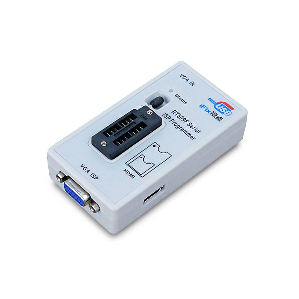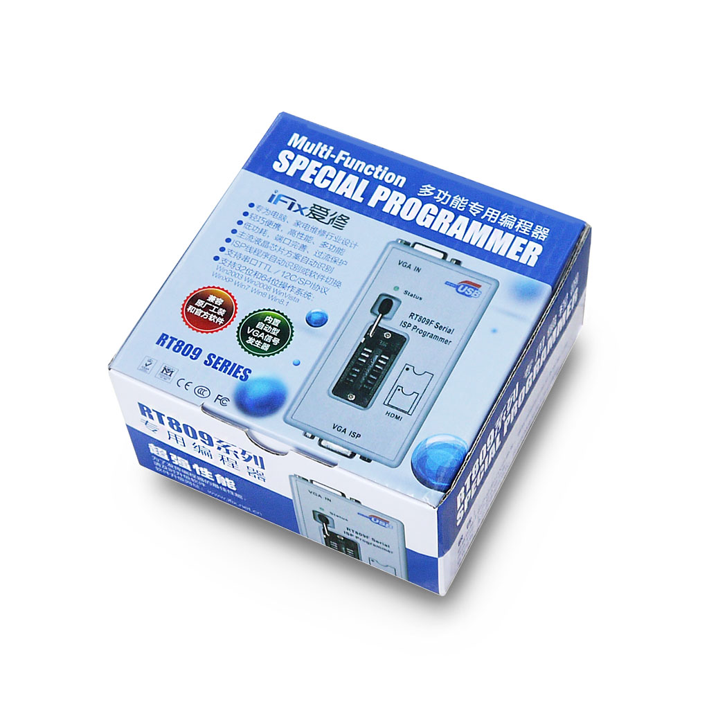 Программатор универсальный RT809F профессиональный. Подключение к компьютеру USB, поддерживаемые интерфейсы программирования NOR/NAND/EMMC/EC/MCU/ISP. Программирует ISP EEPROM Flash память 24/25/93/95 серий, PROM память серий 26/27/28/29/30/39/49/50 серий