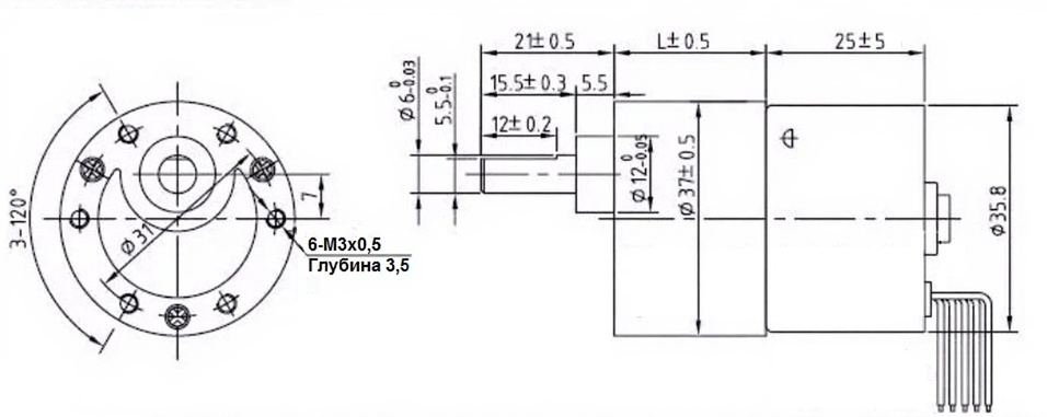 Безколлекторный (безщеточный) трёхфазный мотор JGB37-3625 с редуктором и обратной связью CTTL13955