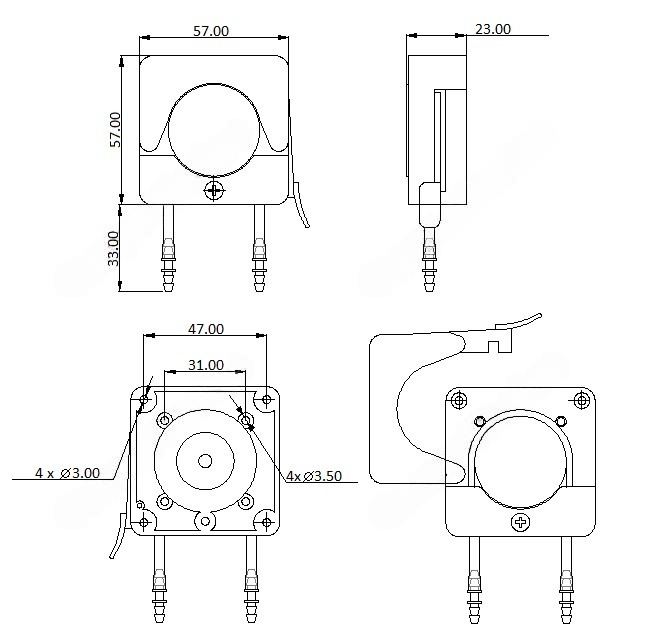 Насос дозированной перекачки жидкости (перистальтический) GOSO BA25. Устанавливается на 5мм вал шагового мотора NEMA17 или обычного мотора с помощью адаптера крепления (мотор и адаптер в комплект не входят). Двунаправленное вращение в диапазоне 0-50 об/ми