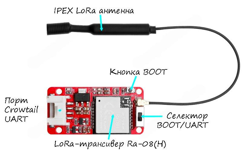 Модуль Crowtail-Lora RA-08H LoRaWAN 803-930МГц Elecrow
