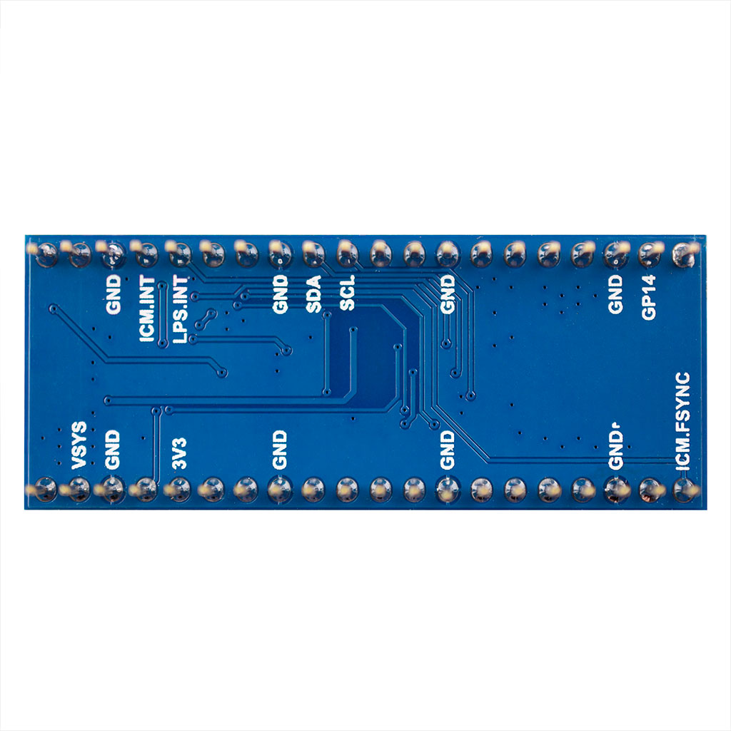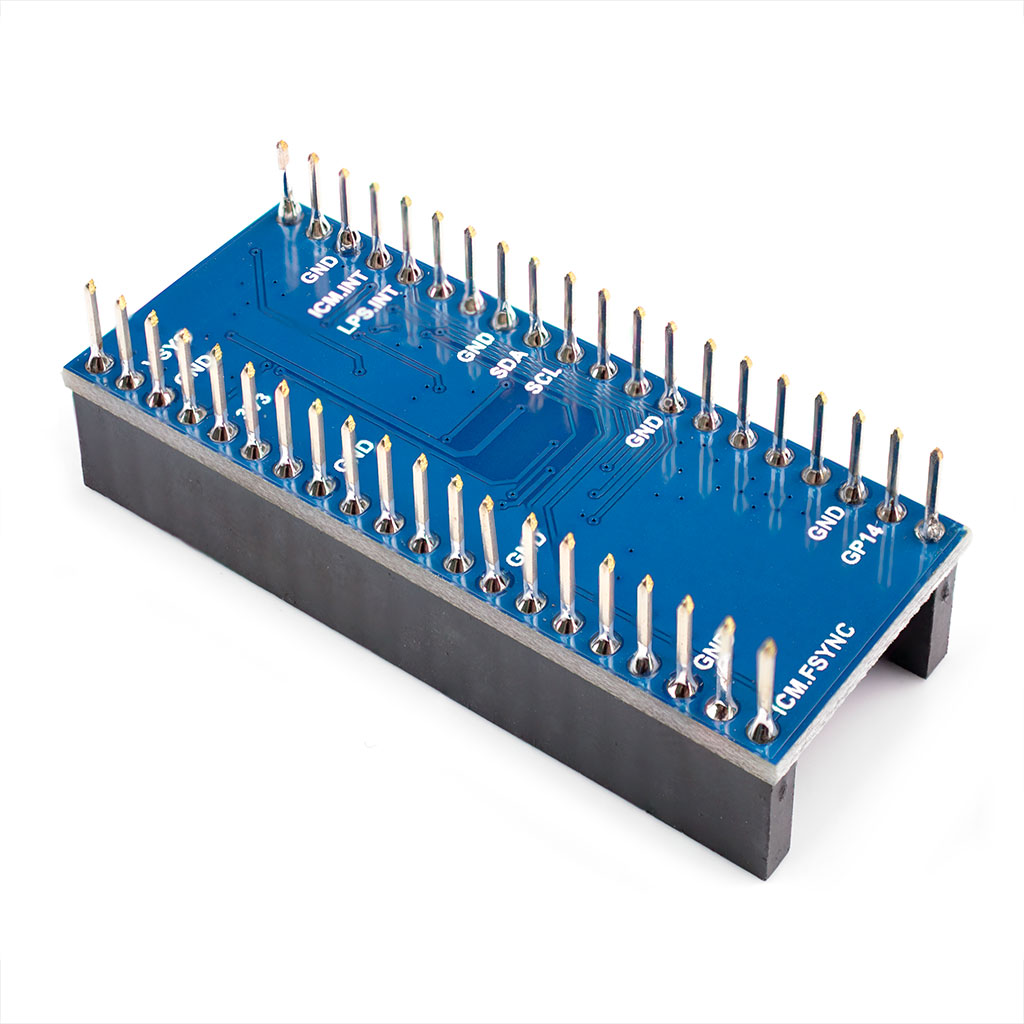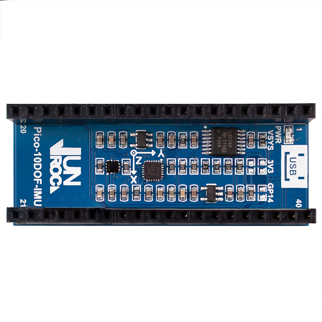 Плата расширения PICO-10DOF-IMU содержит ICM20948 - (3-осевой гироскоп, 3-осевой акселерометр и 3-осевой магнитометр) для обнаружения движения, ориентации и магнитного поля, а также датчик давления LPS22HB для измерения атмосферного давления и расчета высоты.