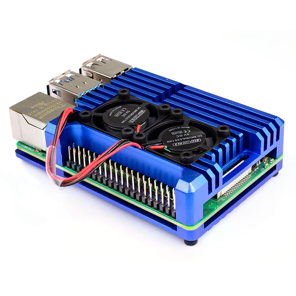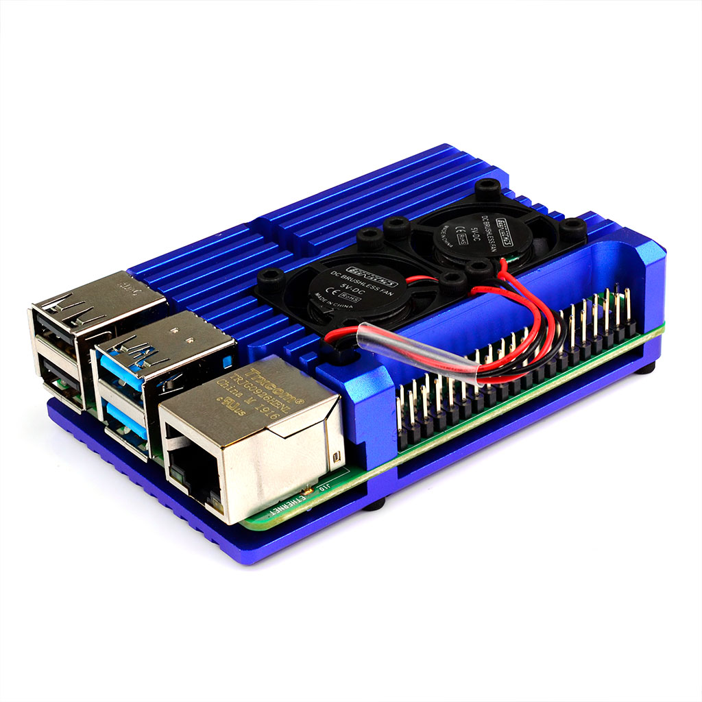 Корпус для Raspberry Pi 4 большой алюминиевый радиатор с вентилятором, синий