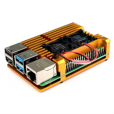 Корпус для Raspberry Pi 4 большой алюминиевый радиатор с вентилятором, золото