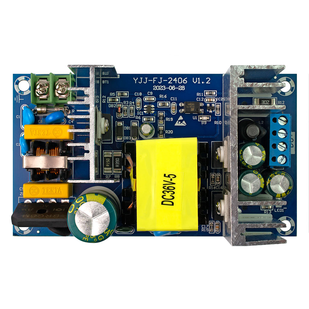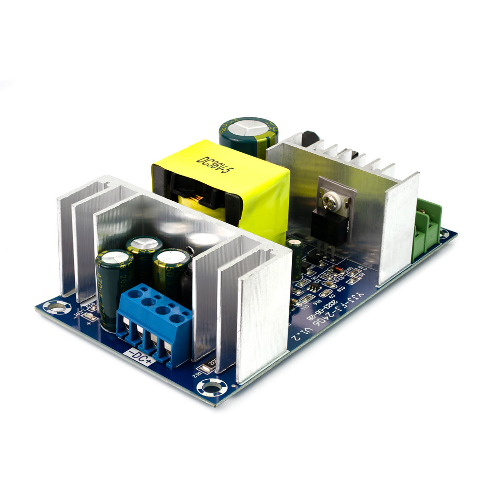 Модуль питания импульсный 220 В на 36 В 5 А. Гальванически развязан от сети. С защитой от перегрузки и КЗ. Размер: 115*66*50 мм.