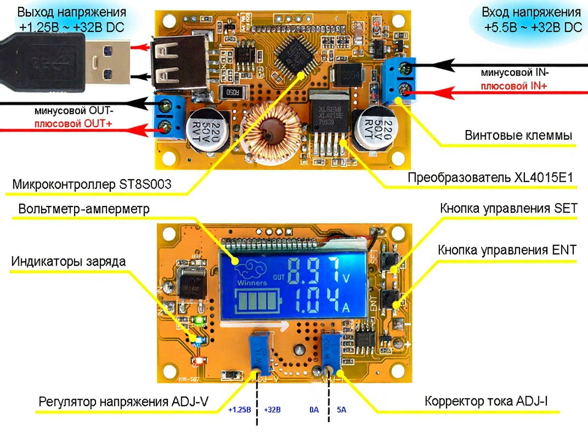 DC-DC преобразователь 6-32/1,5-32V 5A 75W (c LCD дисплеем, регуляторы тока и напряжения, понижающий)