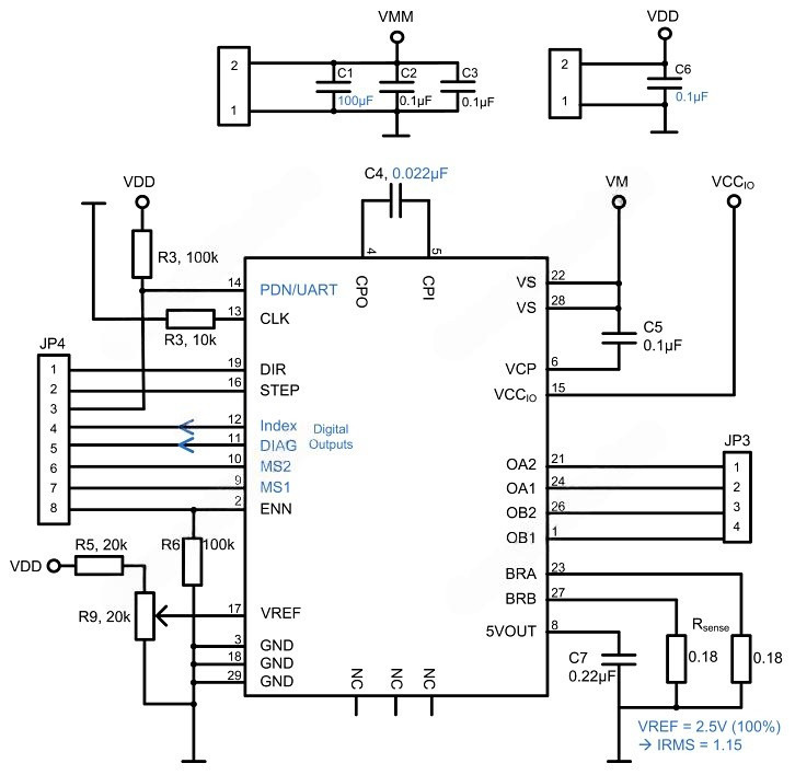 - Режим spreadCycle уменьшает резонанс и повышает плавность. Может быть включен только через UART и OPT.;
