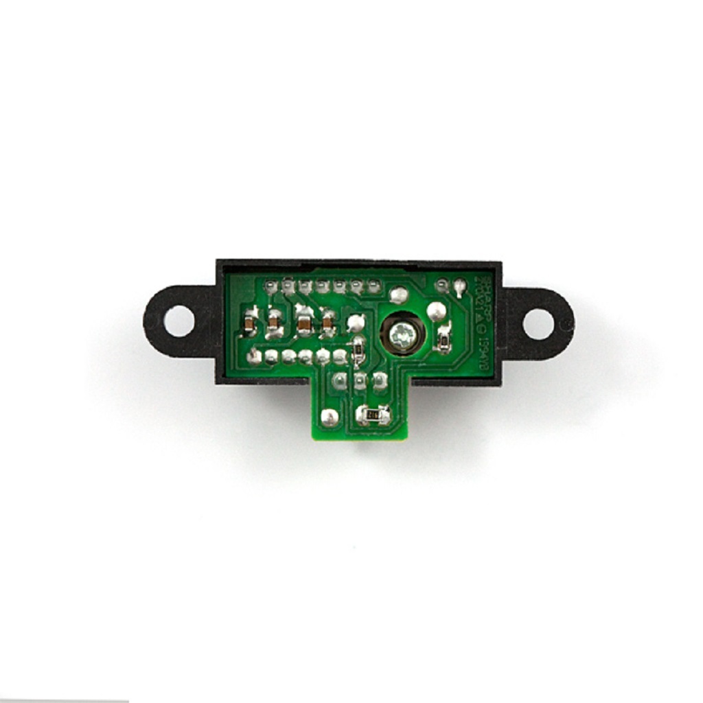 Датчик расстояния GP2Y0A41SK0F является отличным устройством, для добавления функции обхода препятствия или обнаружения движения, вашему роботу или другому проекту. С диапазоном обнаружения от 10 до 30 см и выходным аналоговым сигналом показывающим расстояние, этот датчик очень прост в использовании. Датчики GP2Y0A41SK0F являются популярным выбором для различных проектов, которым требуется точное измерение расстояния. Этот инфракрасный датчик более экономичен по сравнению с ультразвуковым дальномером, а также обеспечивает лучшее быстродействие по сравнению с другими инфракрасными датчиками. Непосредственная связь с большинством микроконтроллеров реализуется за счёт соединения аналогового выхода с аналого-цифровым преобразователем для измерения значений, или через компаратор, для порогового обнаружения. Определяемое расстояние для этой версии датчика от 4 до 30 см. В GP2Y0A41SK0F используется 3-х выводной разъём JST совместимый с 3-х жильным кабелем JST. Также можно просто припаять три провода, если смотреть сзади, то слева направо: питание, земля и выходной сигнал.