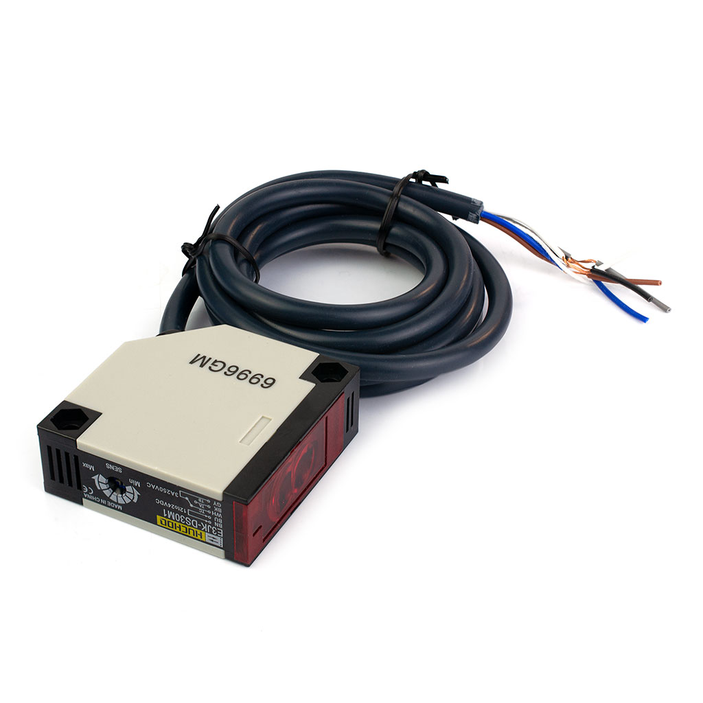 Датчик оптоэлектрический E3JK-DS30M1, обнаружение: 0-0,3м, тип действия: отражение, режим работы: LIGHT-ON, длина шнура: 2м, питание: 12-24В, коммутационный ток: 3А, степень защиты: IP67, размеры: 50х50х22мм
