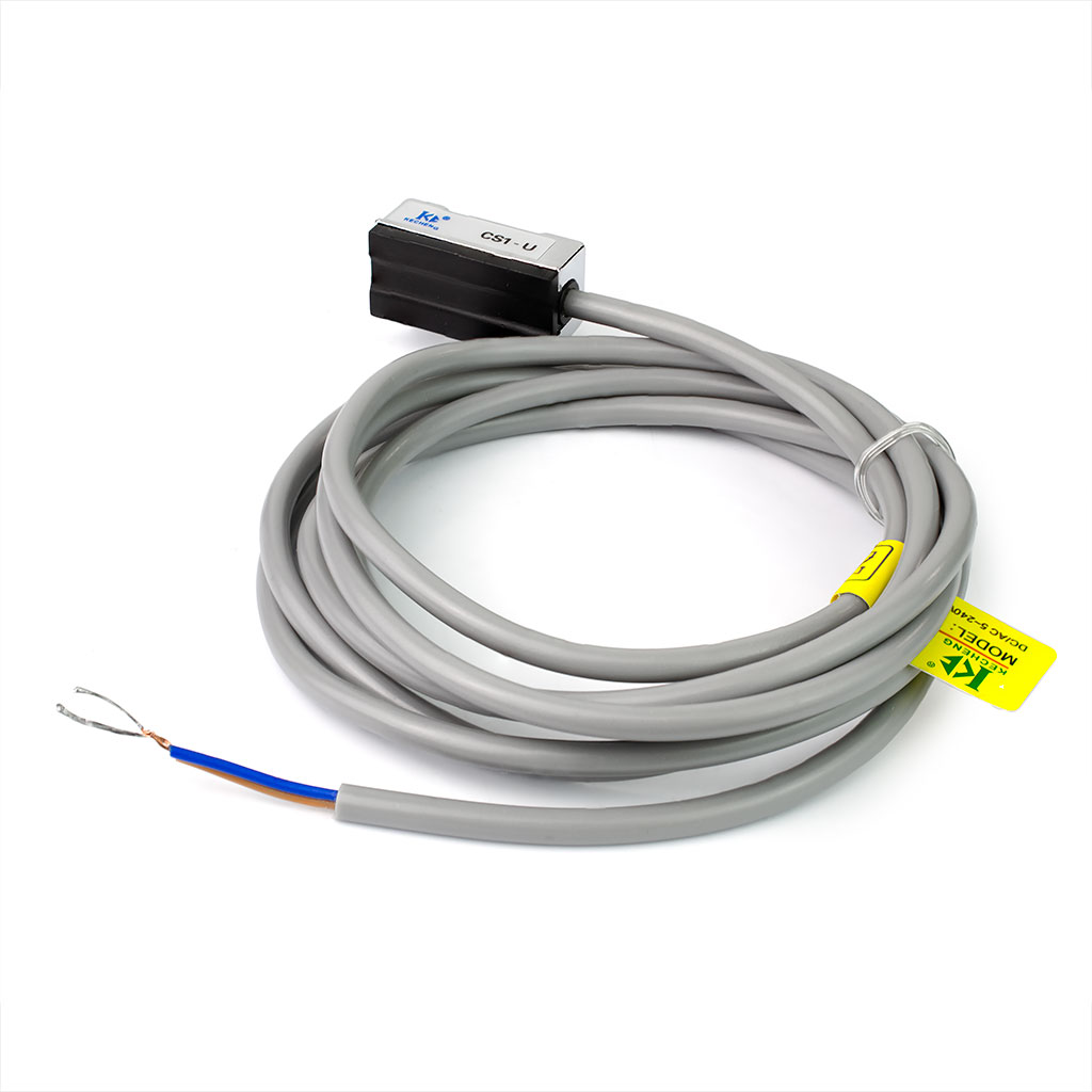 Датчик магнитный герконовый AIRTAC CS1-U двухпроводный с индикацией срабатывания, нормально разомкнутый в металлическом ударопрочном и герметичном корпусе, для промышленного применения в пневмоцилиндрах серии TGC, данные цилиндры производятся с установленными магнитами в поршне.