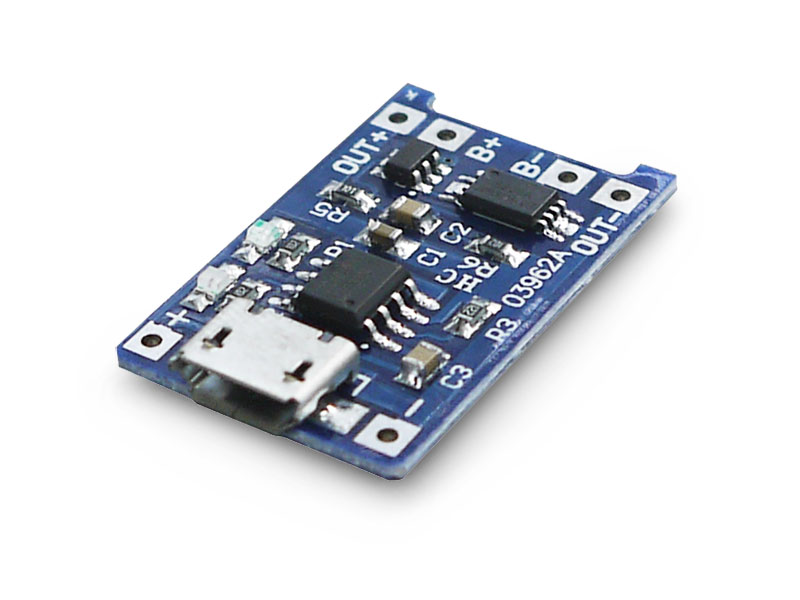 Модуль заряда одного Li-Ion, Li-Pol аккумулятора на TP4056 microUSB с ЗАЩИТОЙ. Индикация процесса заряда, индикация окончания заряда. Ток заряда 1 А ( можно менять перепайкой резистора на второй ноге контроллера)