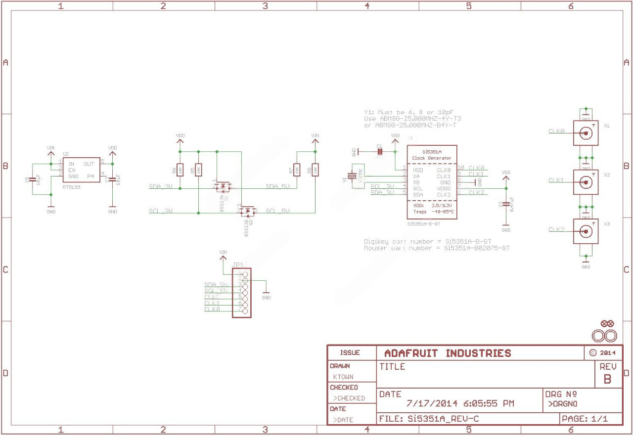 Микросхема Si5351 это конфигурируемый через I2C генератор тактовых частот, идеально подходящий для замены кварцев, кварцевых генераторов, генераторов VCXO, синтезаторов с ФАПЧ (PLL), буферов развязки в приложениях, критичных к общей стоимости. Базируясь на архитектуре PLL/VCXO + high resolution MultiSynth fractional divider, Si5351 может генерировать любую частоту до 200 МГц на каждом из выходов с нулевым отклонением от заданного значения (0 ppm error). Si5351A генерирует 3 не зависящих друг от друга тактовых сигнала, используя внутренний генератор, что позволяет заменить несколько кварцев или кварцевых генераторов.