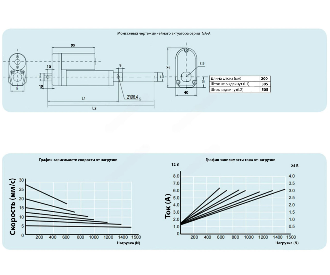 Актуатор TGA-A 1500N с напряжением питания 12 В постоянного тока, позволит вам управлять механизмом весом до 150 килограмм перемещая свой шток в диапазоне 200 миллиметров со скоростью 5 мм/с. Актуатор снабжен ограничителями.
