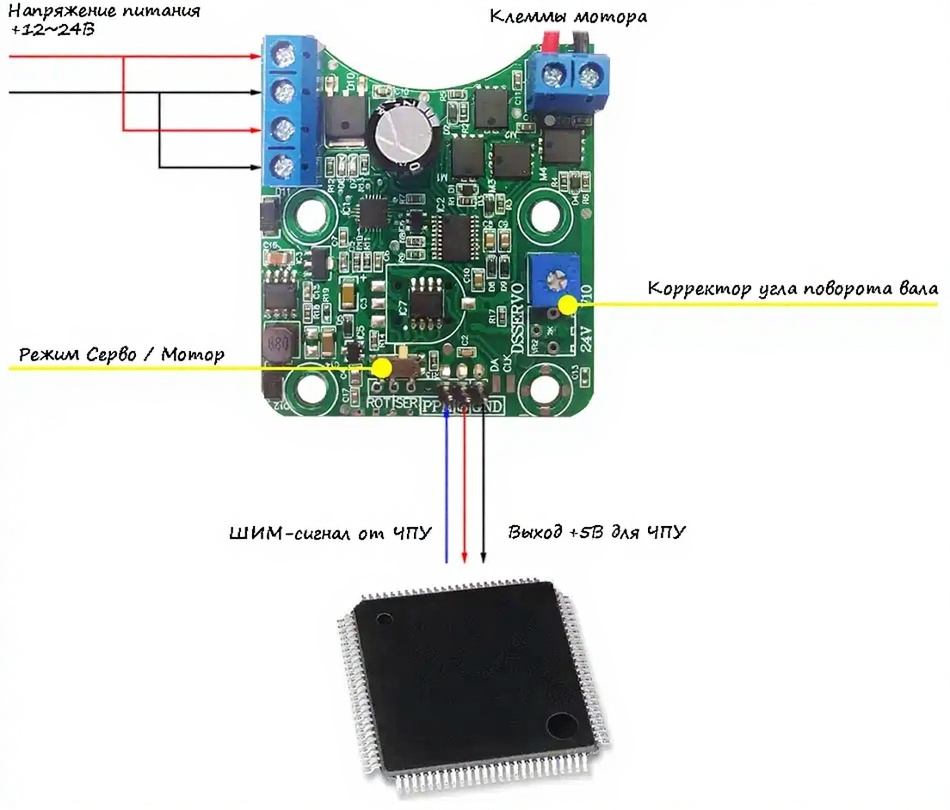 Сервопривод с металлическим редуктором 380кг 24V 9000 об/мин