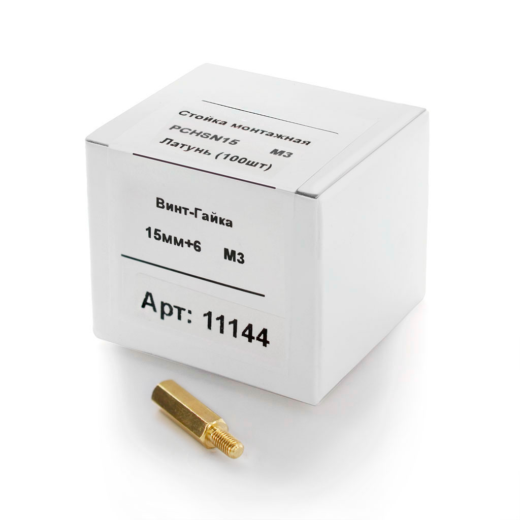 Стойка латунная PCHSN-15. Гайка-Винт. Длина 15 мм. Резьба M3х0,5. 100 штук