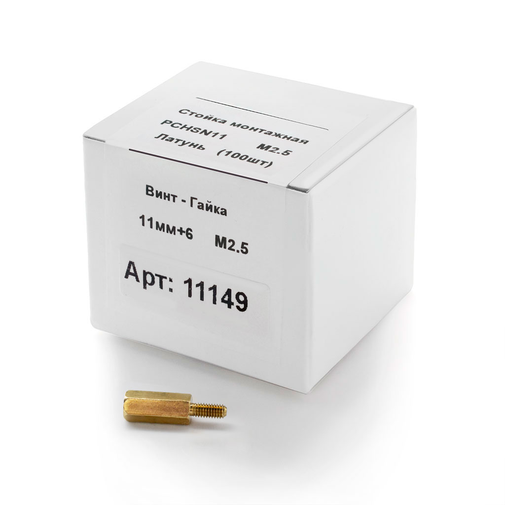 Стойка латунная PCHSN2.5-11. Гайка-Винт. Длина 11 мм. Резьба M2,5х0,45. 100 штук