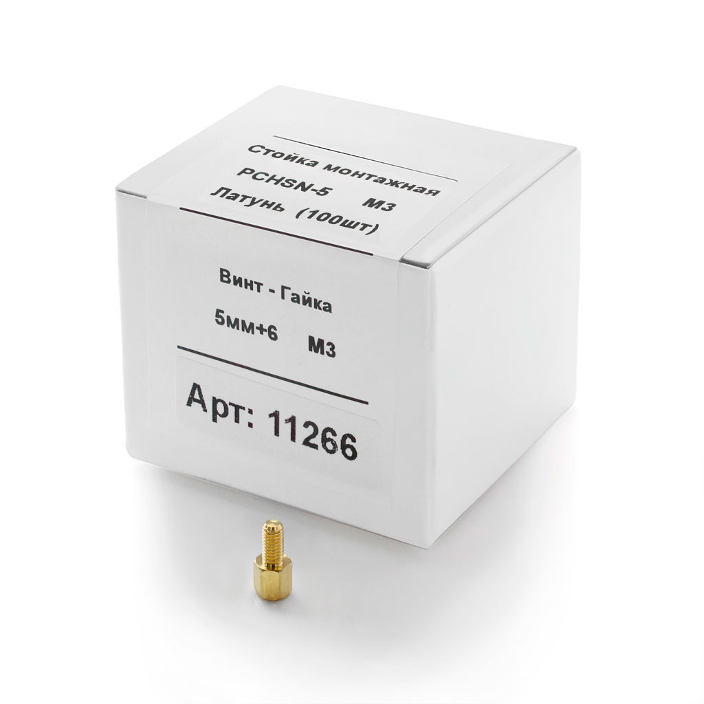 Стойка латунная PCHSN-5. Гайка-Винт. Длина 5 мм. Резьба M3х0,5. 100 штук
