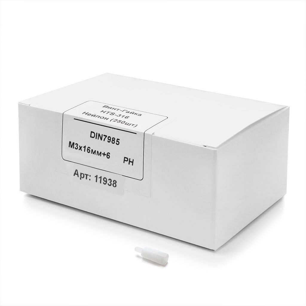 Стойка HTS-316 нейлоновая шестигранная / Гайка-Винт / 16 мм / M3 / 250 штук