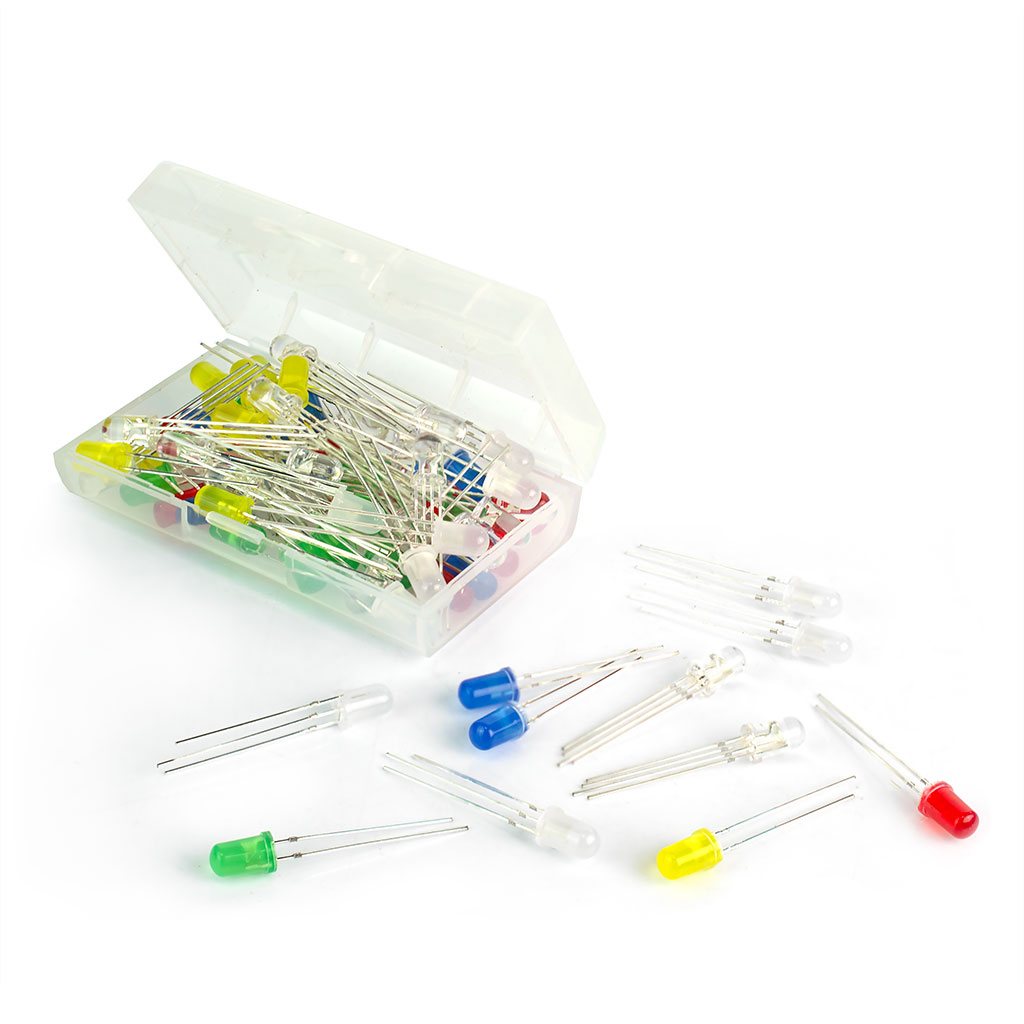 Набор светодиодов 5мм по 7шт каждого, Кр Син Зел Жел Бел Кр-Зел и RGB