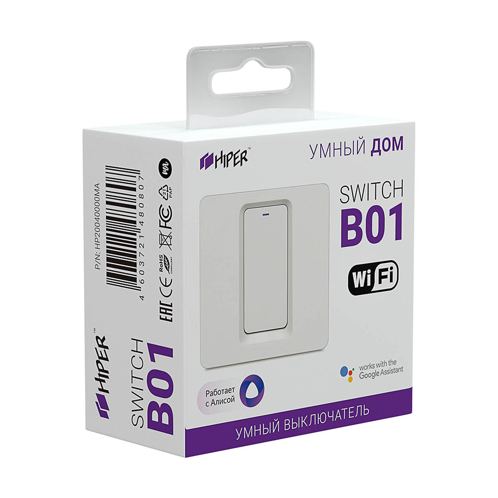 Умный встраиваемый Wi-Fi выключатель HIPER IoT Switch B01 (1 кнопка)