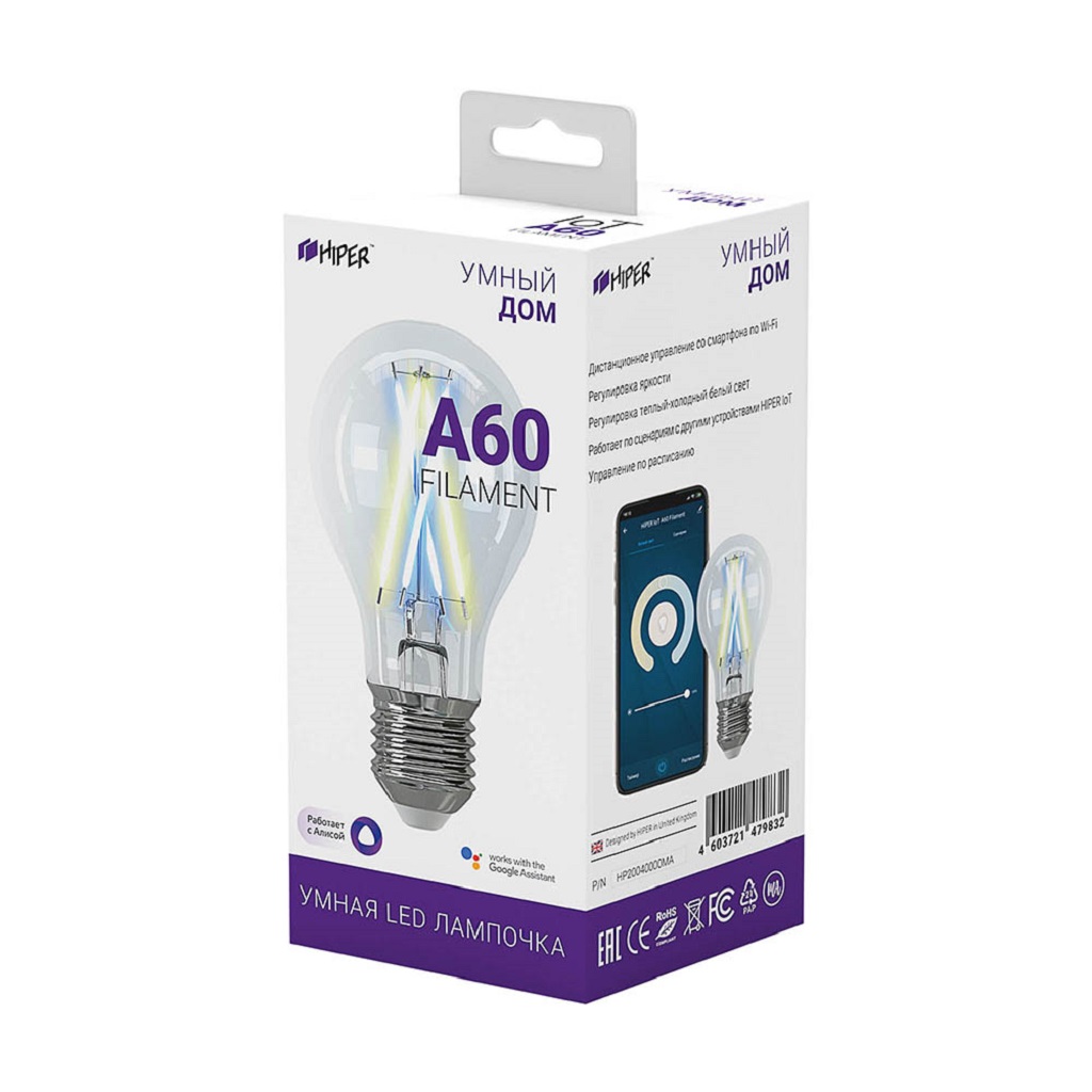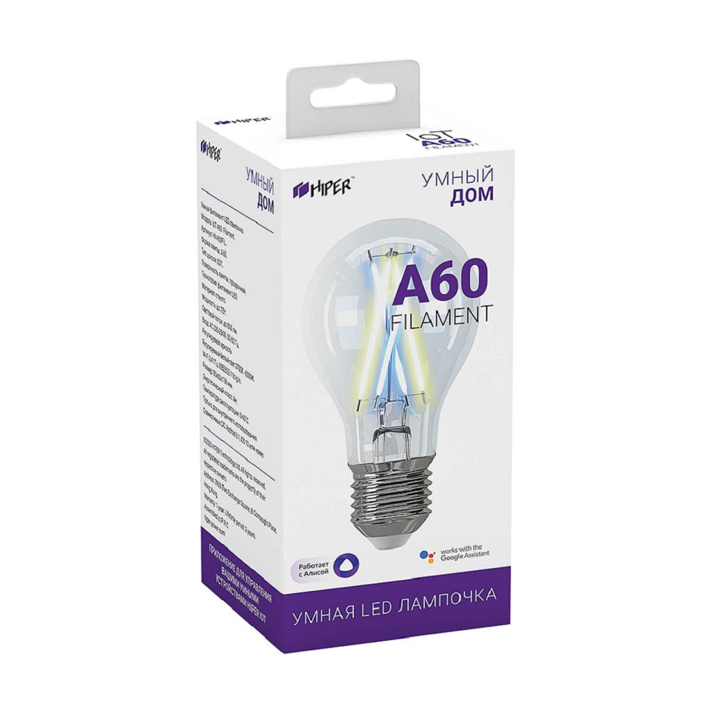 Умная LED лампа HIPER IoT A60 Filament WiFi (E27, 2700-6500K, 800lm, шар) Умная LED лампа HIPER IoT A60 Filament WiFi (E27, 2700-6500K, 800lm, шар) Умная LED лампа HIPER IoT A60 Filament WiFi (E27, 2700-6500K, 800lm, шар)