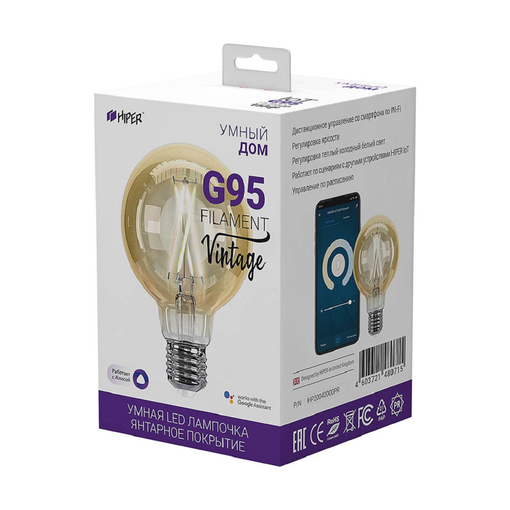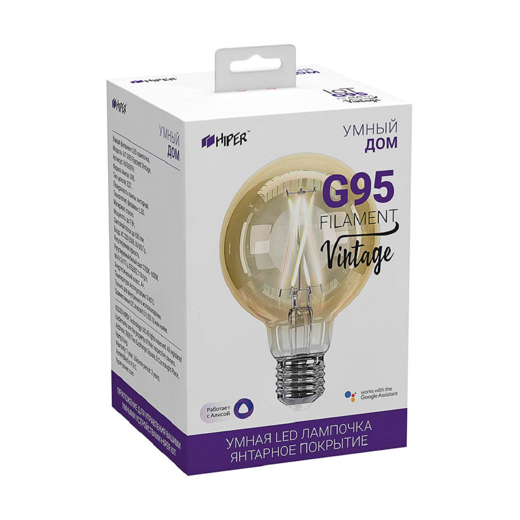 Умная LED лампа HIPER IoT G95 Filament Vintage WiFi (E27, 2700-6500K, 600lm, тонировка, шар) Умная LED лампа HIPER IoT G95 Filament Vintage WiFi (E27, 2700-6500K, 600lm, тонировка, шар) Умная LED лампа HIPER IoT G95 Filament Vintage WiFi (E27, 2700-6500K, 600lm, тонировка, шар)