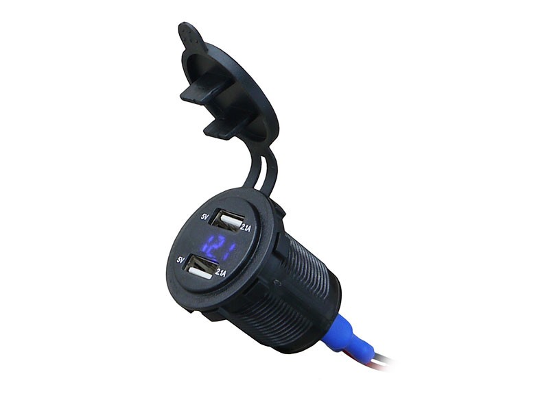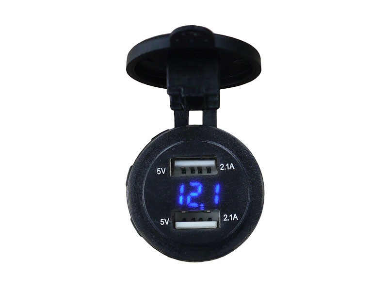 Адаптер USB 12-24V->5V 4,2А для монтажа в панель с вольтметром, синий 14620