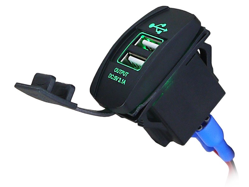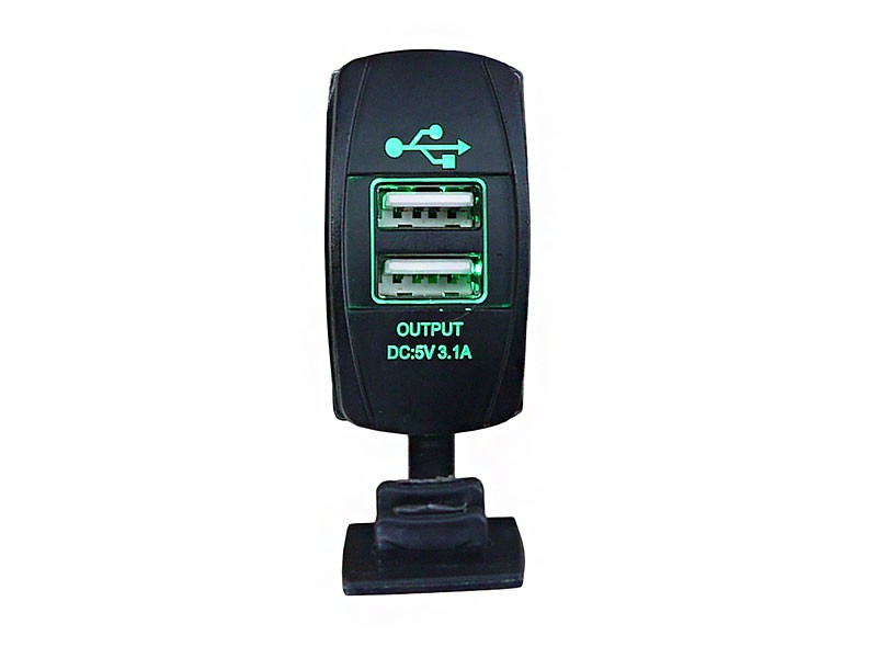 Адаптер USB 12-24V->5V 3,1А для монтажа в панель прямоугольный, зелёный