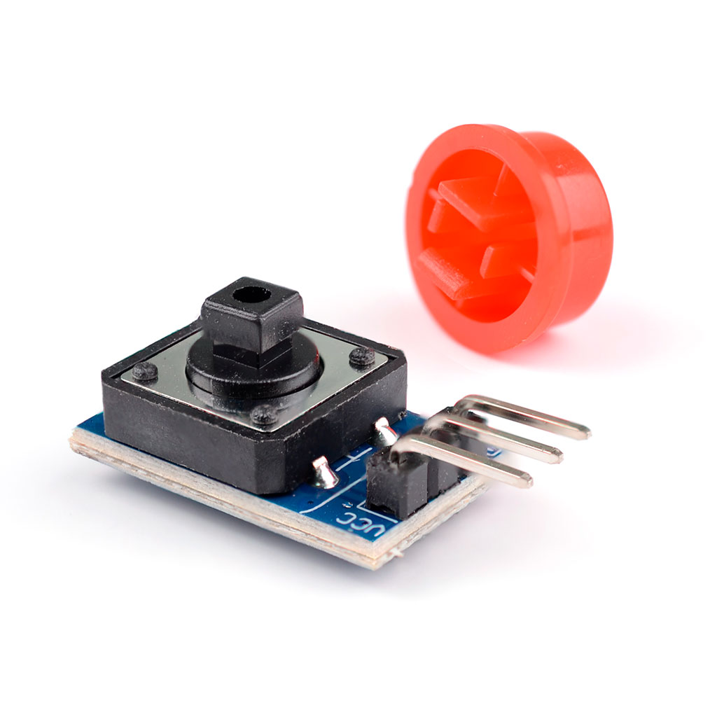 Данный модуль представляет собой печатную плату, на которую установлена тактовая кнопка без фиксации размером 12 на 12 мм.