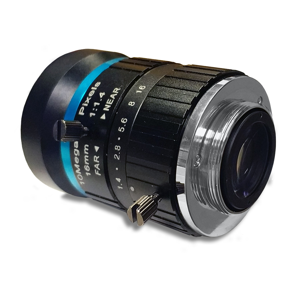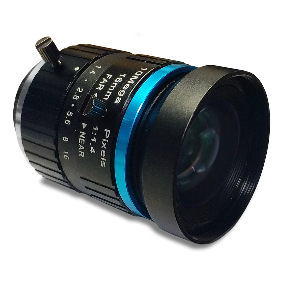 Качественный промышленный телефото объектив PT3611614M10MP высокого разрешения 10МП с фокусным расстоянием 16мм и регулируемым относительным отверстием диафрагмы 1.4-16. Линзы объектива обладают очень малым процентом искажения изображения. Объектив имеет крепление стандарта C-mount и полностью совместим с камерой Raspberry Pi High Quality Camera CS (необходим переходник-адаптер C/CS).